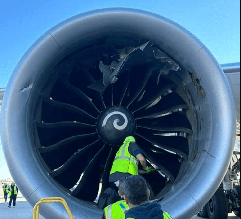 However, the jet blast from the A350 blew the containers off their dollies and one was ingested by the 787’s right engine causing extensive damage.
