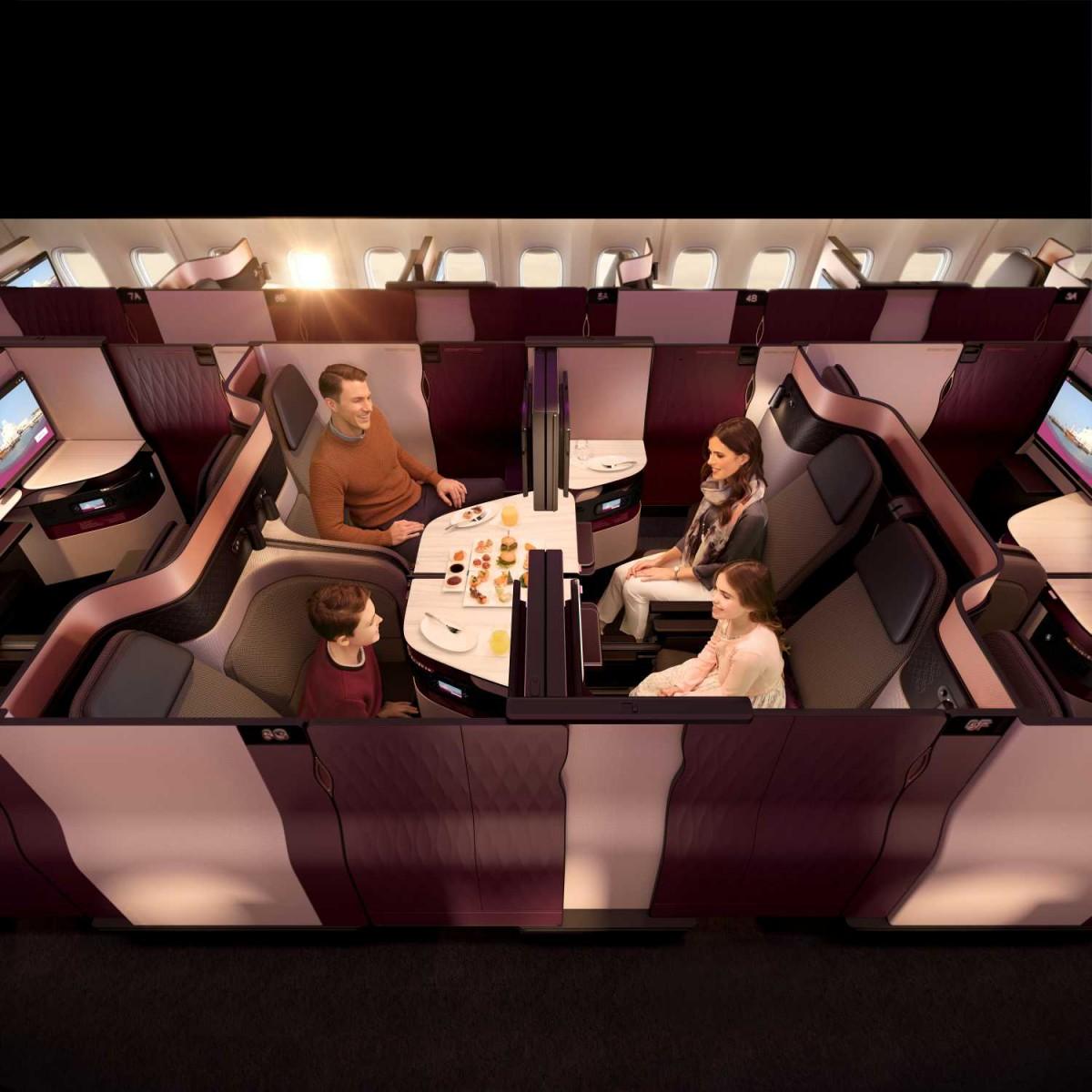 Qatar Airways' business class suite, pictured above, is a standout and the best in its class and has won numerous awards. The QSuite has a privacy door and for a family of four can be turned into a communal eating space. Outstanding!