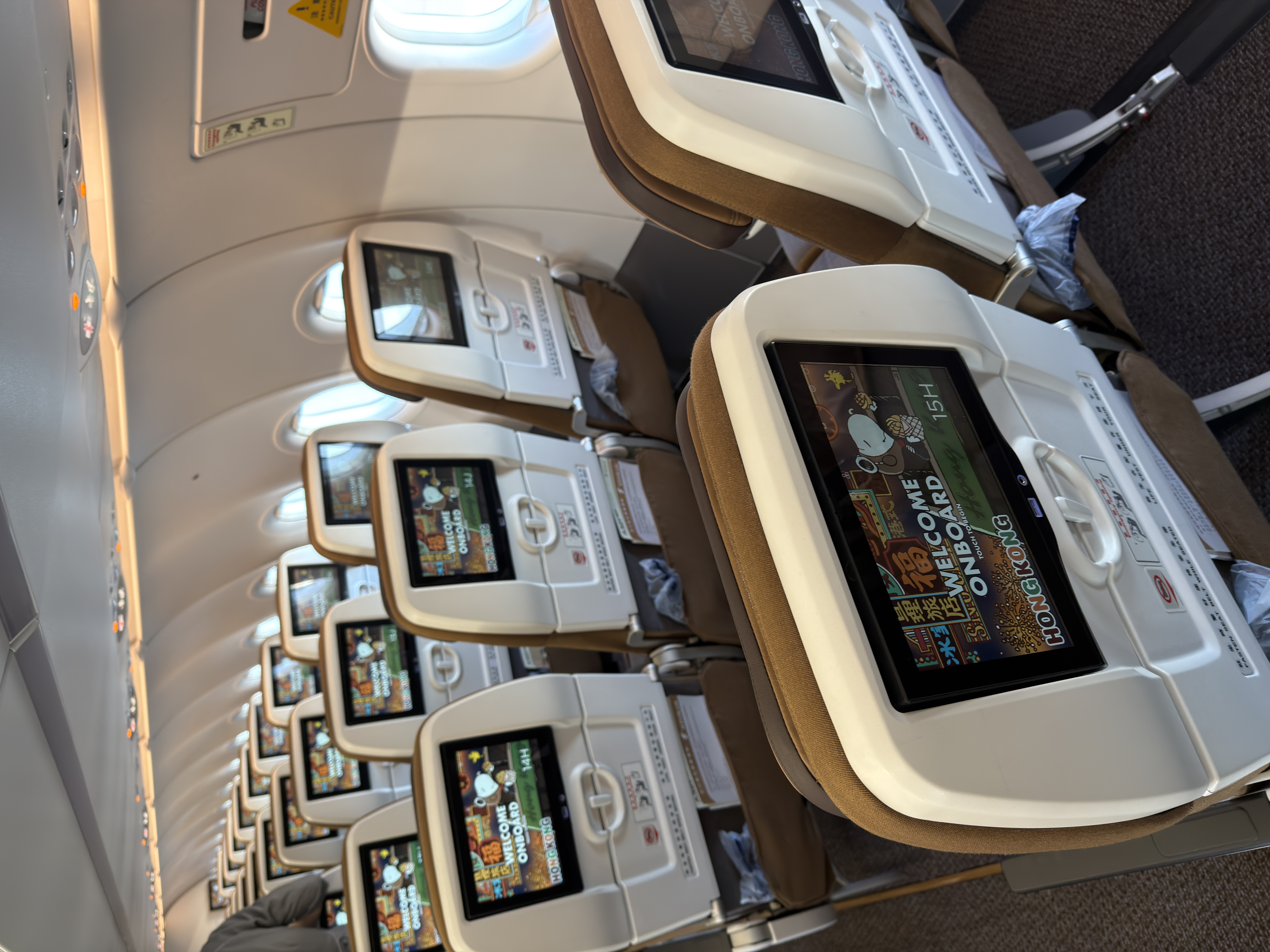 In Economy, catering quality remained a standout especially given the short flight time. On the Osaka–Hong Kong sectors, meals included pork udon noodles with seasonal fruit, an egg roll biscuit snack, and apple juice on one flight, with tortellini and chicken served on the return. The longer Economy sector featured Japanese fried chicken with rice, seasonal fruit, a warm bread roll, and a small butter biscuit for dessert.